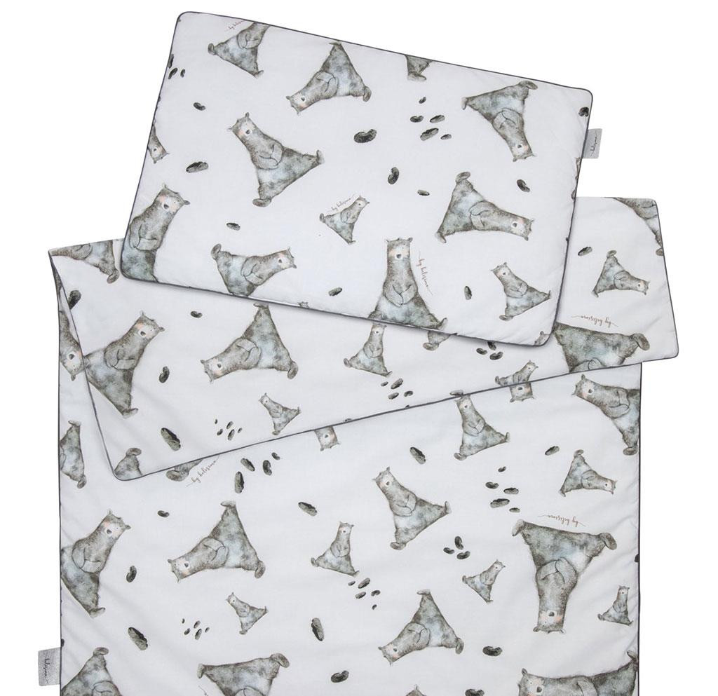 2-részes ágyneműgarnitúra Belisima Mr.Grey babák számára. Párnahuzatot 40x60 cm és takaró huzatot 100x135 cm tartalmaz. Puha minőségi anyagból készült. Összetétel: 100% pamut. Ezek a termékek biztonságosak, mivel: a természetes pamut nem okoz bőrirritációt, mivel nem tartalmaz formaldehidet és egyéb, csecsemőkre káros anyagokat. Nem veszítenek színeik élénkségéből és nem színezi el a többi ruhát. Kellemes mintázatúak és színei nyugtató hatásúak. Nem tartalmaznak gombokat, sem műanyag illetve acél darabkákat, melyek veszélyesek lennének gyermeke számára. A párna és a paplan töltete antialergén anyagból készült ami azt jelenti, hogy nem terjeszt mikroorganizmusokat és penészt.