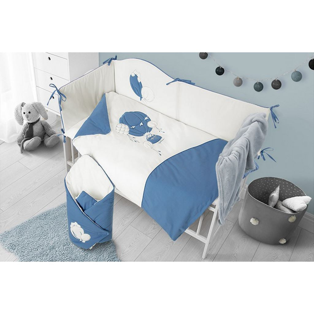 6- részes ágyneműgarnitúra Belisima Ballons babák számára. Tartalmaz: párnahuzatot, paplanhuzatot, rácsvédőt, párnát, baldachint és paplant. Párnahuzat 40x60 cm, takaró huzat 100x135 cm, rácsvédő 180 cm. Puha minőségi anyagból készült. Összetétel: 100% pamut. Ezek a termékek biztonságosak, mivel: a természetes pamut nem okoz bőrirritációt, mivel nem tartalmaz formaldehidet és egyéb, csecsemőkre káros anyagokat. Nem veszítenek színeik élénkségéből és nem színezi el a többi ruhát. Kellemes mintázatúak és színei nyugtató hatásúak. Az ágyneműhuzaton használt cipzár "biztonságos cipzár" lengővégek nélkül, amit a gyermek nem vehet le és nem nyelhet le! Nem tartalmaznak gombokat, sem műanyag illetve acél darabkákat, melyek veszélyesek lennének gyermeke számára. A párna és a paplan töltete antialergén anyagból készült ami azt jelenti, hogy nem terjeszt mikroorganizmusokat és penészt.