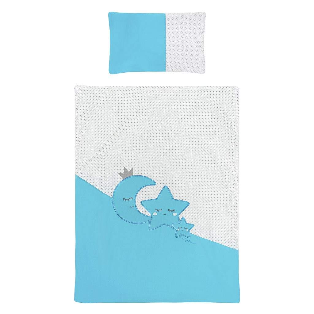 6- részes ágyneműgarnitúra Belisima Magic Stars babák számára. Tartalmaz: párnahuzatot, paplanhuzatot, rácsvédőt, párnát, baldachint és paplant. Párnahuzat 40x60 cm, takaró huzat 100x135 cm, rácsvédő 180 cm. Puha minőségi anyagból készült. Összetétel: 100% pamut. Ezek a termékek biztonságosak, mivel: a természetes pamut nem okoz bőrirritációt, mivel nem tartalmaz formaldehidet és egyéb, csecsemőkre káros anyagokat. Nem veszítenek színeik élénkségéből és nem színezi el a többi ruhát. Kellemes mintázatúak és színei nyugtató hatásúak. Az ágyneműhuzaton használt cipzár "biztonságos cipzár" lengővégek nélkül, amit a gyermek nem vehet le és nem nyelhet le! Nem tartalmaznak gombokat, sem műanyag illetve acél darabkákat, melyek veszélyesek lennének gyermeke számára. A párna és a paplan töltete antialergén anyagból készült ami azt jelenti, hogy nem terjeszt mikroorganizmusokat és penészt.