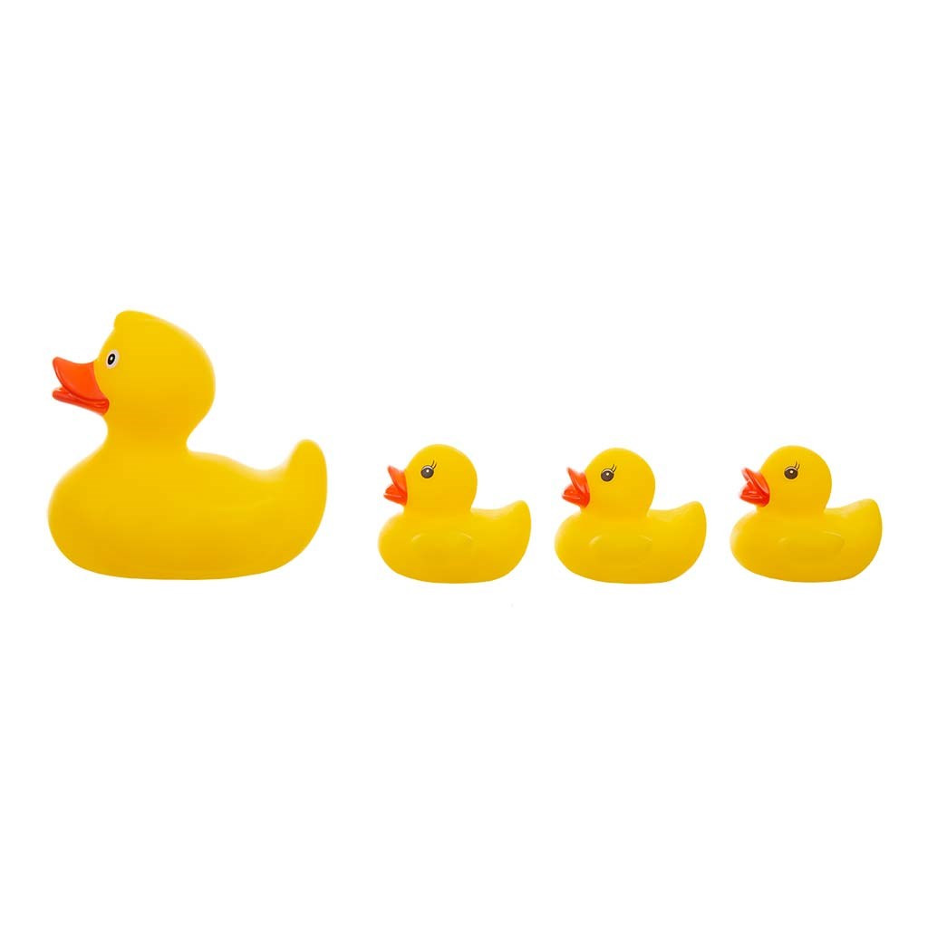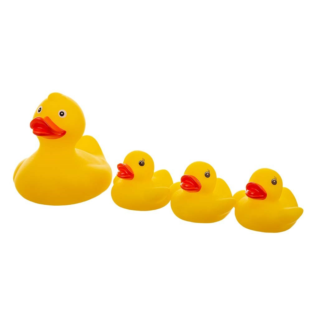 Szettünk 4 gumikacsából áll – az anyakacsából és 3 kiskacsájából.