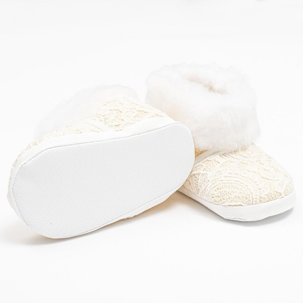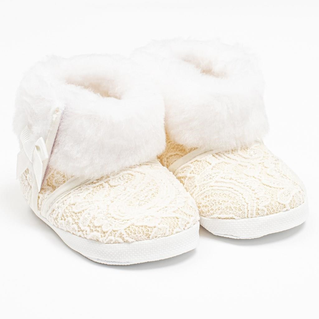 Baba aranyos és kényelmes téli cipő New Baby kisbabák számára. Divatos gyönyörű, meleg csipkés csizma, tépőzáras. Belső része polár-100% poliészter béléssel rendelkezik. A cipő kényelmes, könnyű és a láb természetes mozgásához igazodó. Rugalmas talppal rendelkeznek, így leginkább hasonlítanak a mezítlábas járáshoz, viszont pont annyira vastagok, hogy védjék a baba talpacskáját a hideg padlótól. Összetétel: 100% poliészter, gyapjú polár -100% poliészter. Talp: szintetikus anyag-BPA free. A talpbetét hossza 11 cm. 3-6 hónapos gyermekek számára készült. Praktikus dobozban csomagolva. Megjegyzés: a textilbetét alatt néha van egy papírbetét, amely megtartja a kiscipő alakját. Az első használat előtt távolítsa el ezt a papírbetétet.