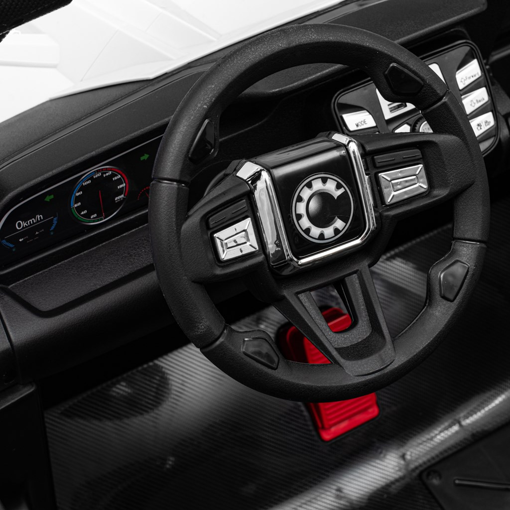 A Buggy Road gazdag felszereltséggel, ergonomikus kialakítással és lenyűgöző dizájnnal büszkélkedhet. Az autó mindkét oldalán nyitható ajtók, gombnyomásos indítás és zenei panel USB bemenettel teszik lehetővé, hogy a gyerek kedvenc zenéit hallgassa vezetés közben. A hangerőszabályozó és az előre feltöltött dallamok még szórakoztatóbbá teszik az utazást.