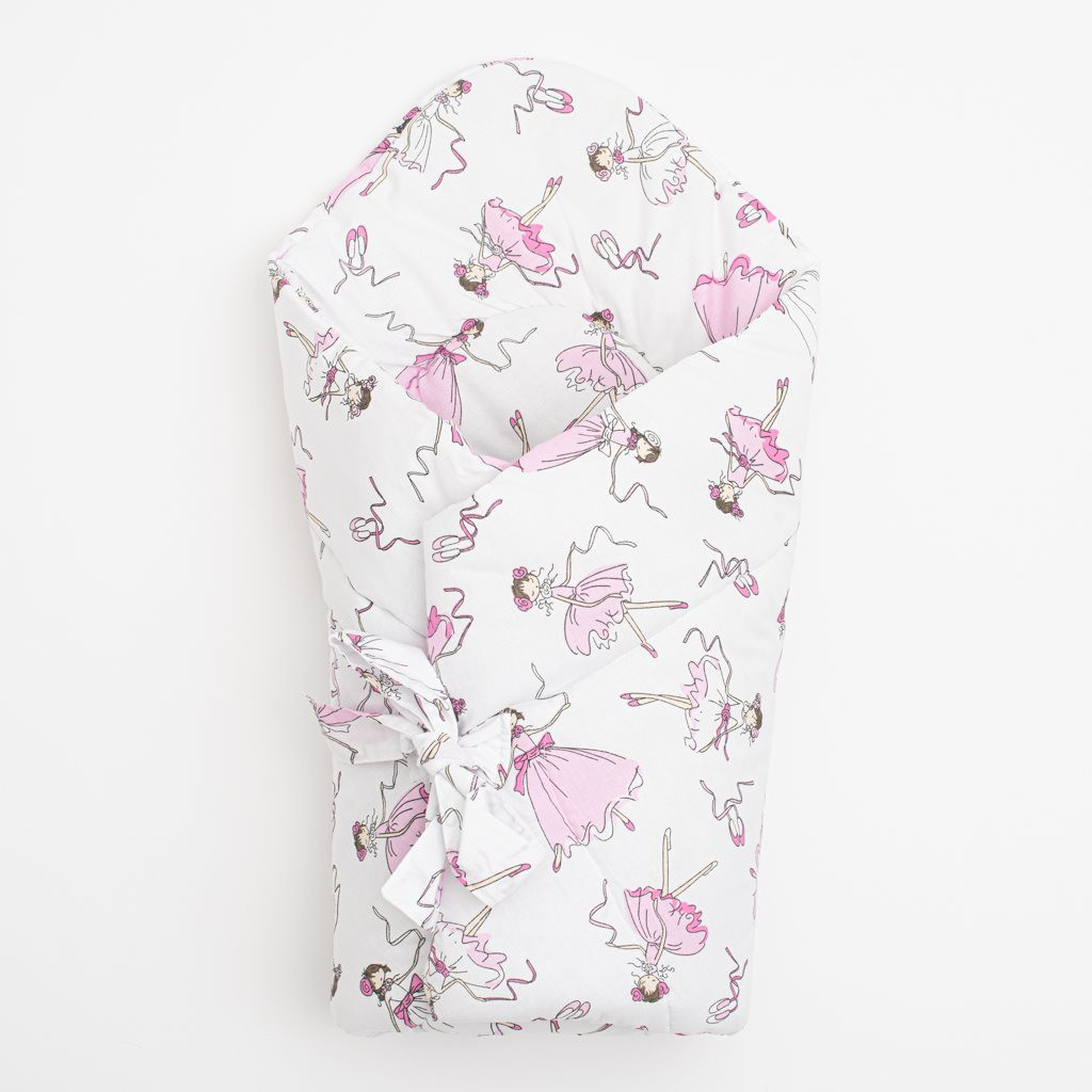 Gyönyörű New Baby Ballerina Bella babapólya. A pólya kiváló minőségű és puha anyagból készült, amely kellemes meleget biztosít a babának. Táncoló balerina mintával. Madzagra kötve. Méret: kb. 75 x 75 cm. Anyagösszetétel: huzat 100% pamut, töltet 100% poliészter. /> Garantáltan biztonságos
