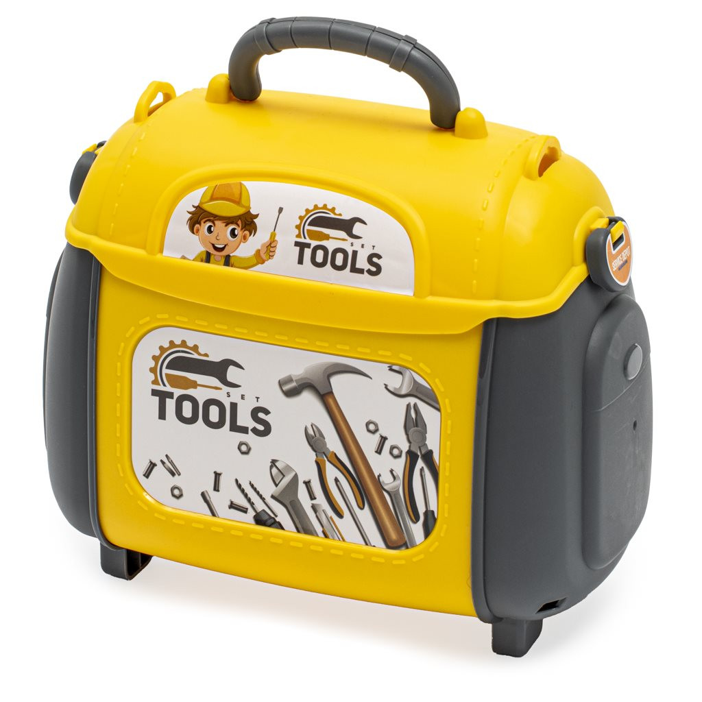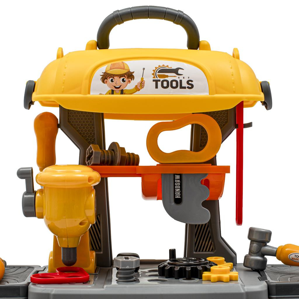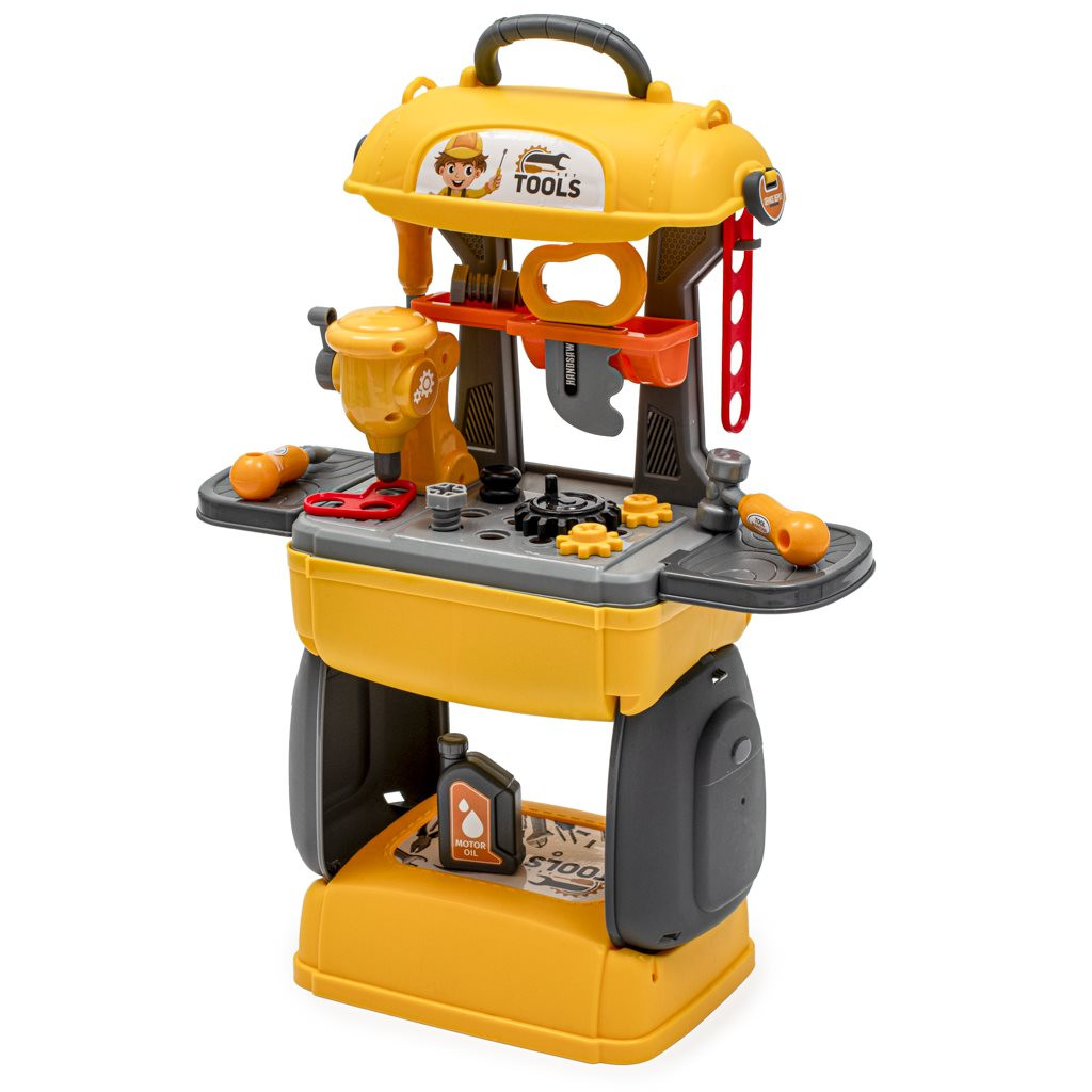 A bőröndben kialakított gyermekműhely nagyszerű módja lehet a gyermekek készségeinek és érdeklődésének fejlesztésére a szerszámokkal való munka iránt. A műhely 28 alkatrészt tartalmaz, többek között csavarhúzókat, anyákat és egyebeket.