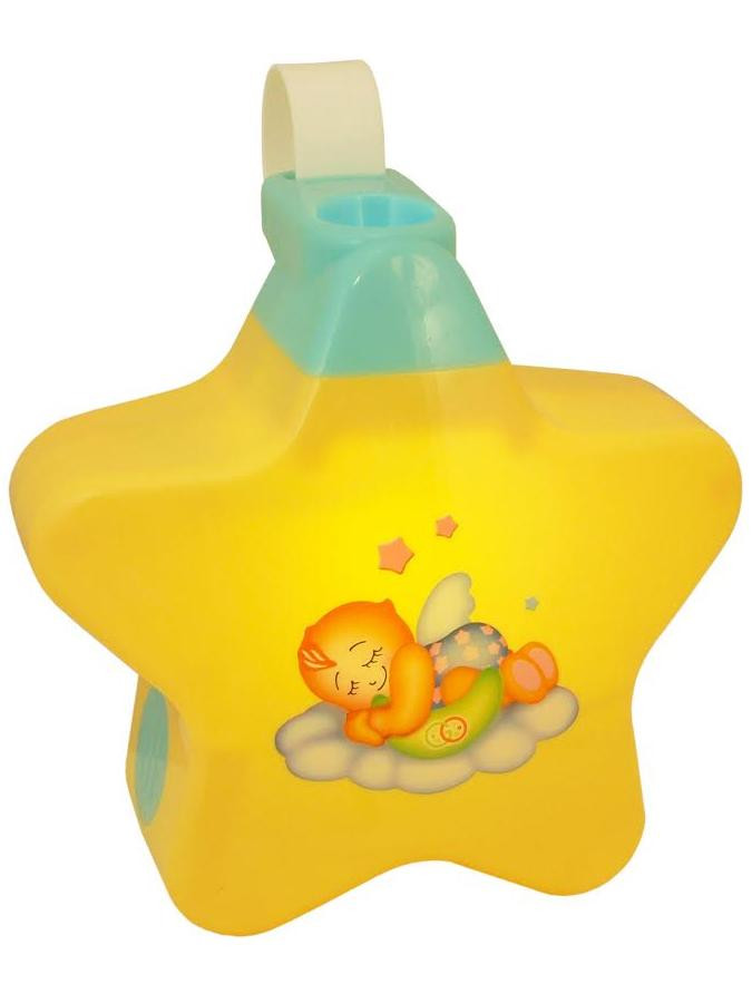 Zenélő projektoros kisbabák számára. Csillag alakű. Csilag és maci képeket vetít, és dallamokat játszik. 2 fokozatú hangerő szabályzóval. Külön gombbal rendelkezik a dallamokra és a képek vetítésére. Minőségi műanyagból készült. 0- hónapos kortól ajánlott. Az elemek nem a csomagolás része. Mérete kb 15x15 cm.