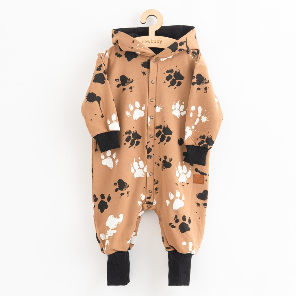 Baba pamut kezeslábas kapucnival fülekkel New Baby mancsát mustárszín