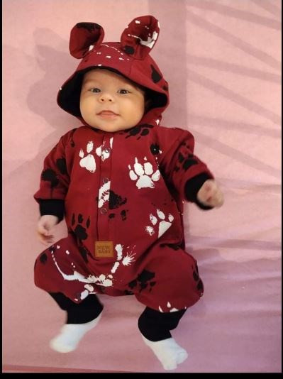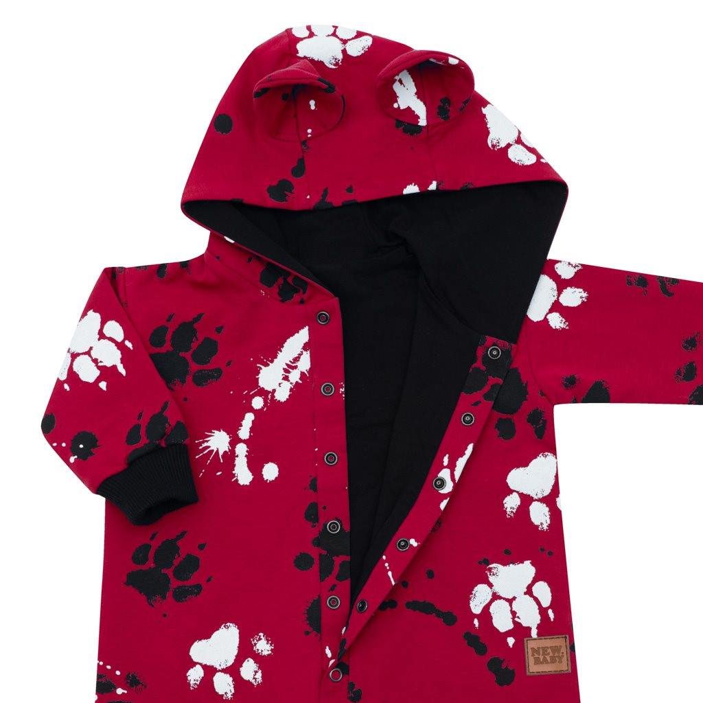Baba pamut kezeslábas kapucnival fülekkel New Baby mancsát sötét rózsaszín